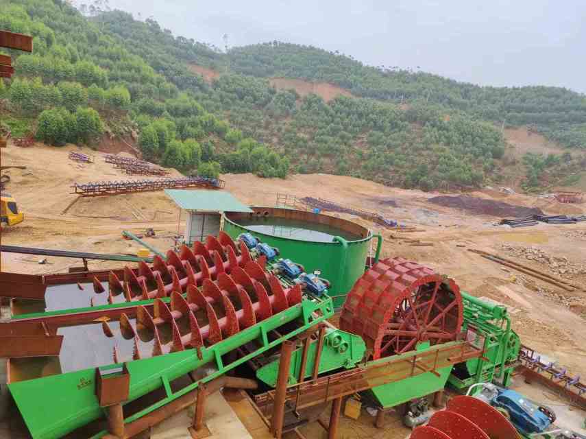 3、杂质排出:经过充分清洗后的杂质(主要包括泥土、石粉及部分轻质杂物)被水流携带至洗砂机的尾端,并通过专门的排污口排出。